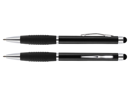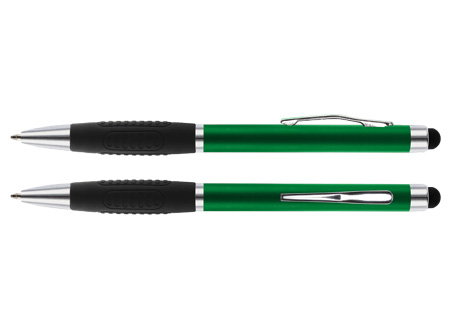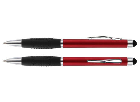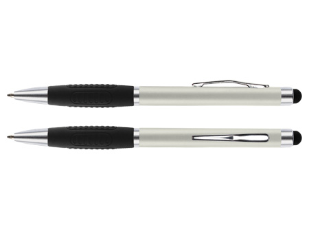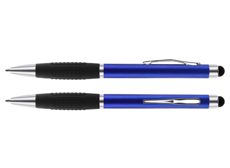 Bolígrafo «Alabama» con cuerpo de color metalizado y puntero touch-screen para pantalla táctil. Escritura azul.