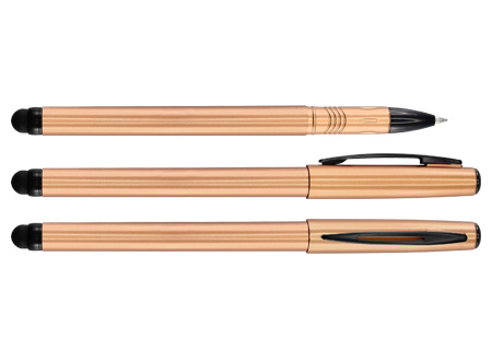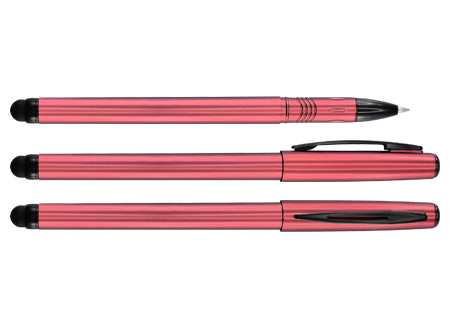 Roller Pen plástico modelo «Cooper» con puntero touch-screen para pantalla táctil, tinta negra. Cuerpo de color metalizado.